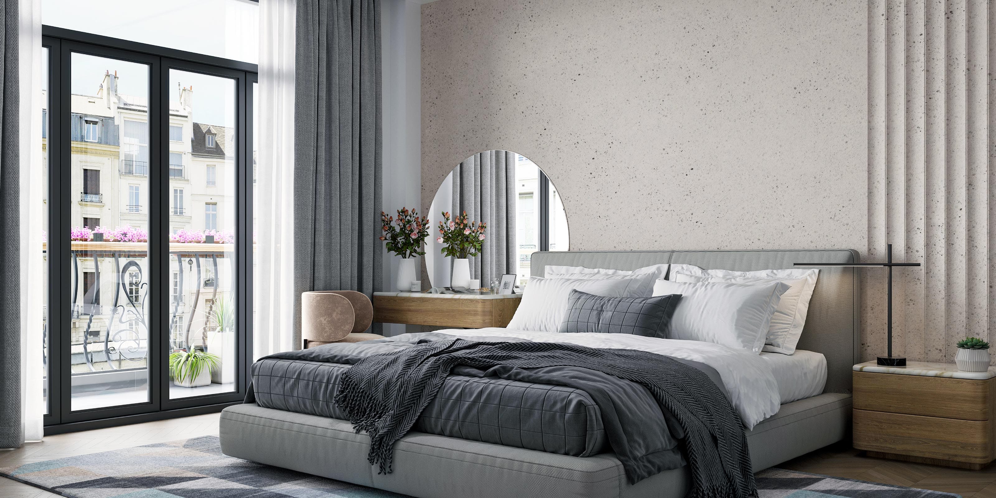 - Pereți de accent: Afirmă-ți stilul cu pereți de accent din Infinity Spray Granite, elemente captivante în locuința clientului tău.