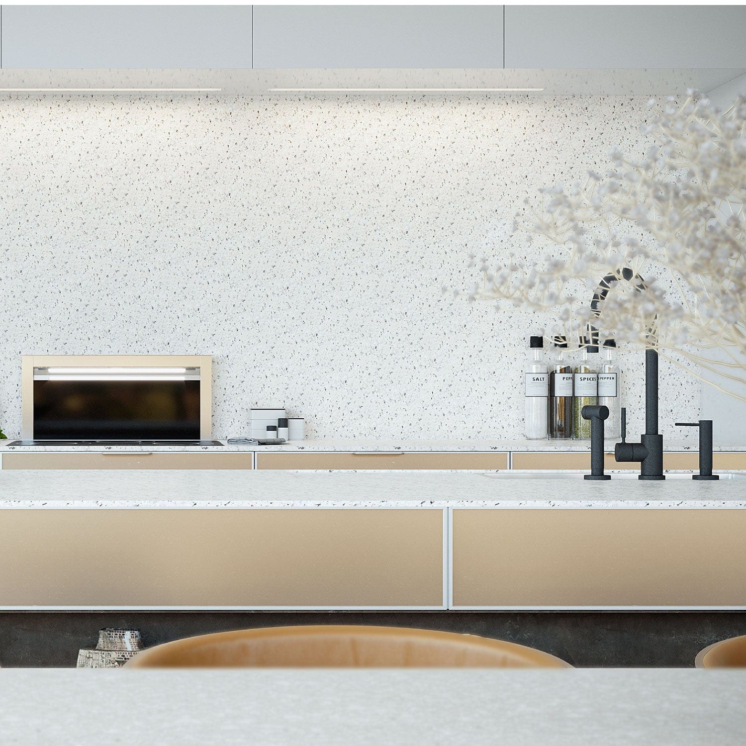 - Blaturi de bucătărie: Ridică nivelul spațiilor culinare cu blaturi spectaculoase din Infinity Spray Granite, frumoase și totodată practice pentru pregătirea mâncării.